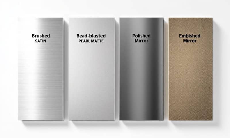 表面處理也值得注意。 最常見的是「毛絲面」或叫「拉絲面」,就是表面有一絲一絲的紋路。 這種處理的好處是,就算有小刮傷,混在紋路裡也看不太出來。還有一種是「壓花紋」,表面有凹凸的紋路,更耐磨,也比較不容易沾油污,但價格通常比較高。 亮面的... 我個人比較不推薦,因為太容易留刮痕跟水漬了。